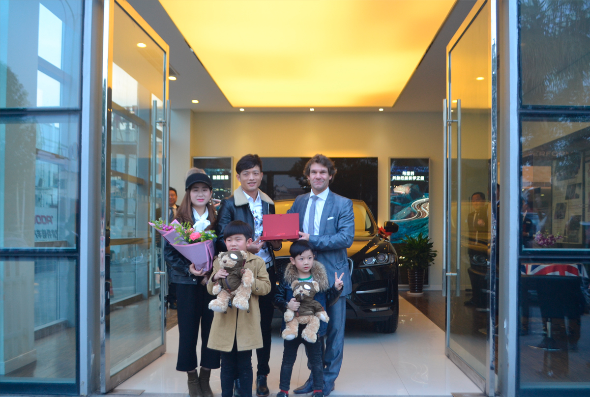 彼夕乐先生到访恰逢我公司F-PACE车主黄先生提车,共同见证客户喜提捷豹F-PACE的完美时刻,并送上美好祝福。