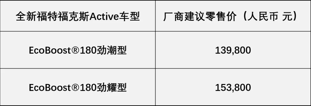 全新福克斯Active共有两款车型