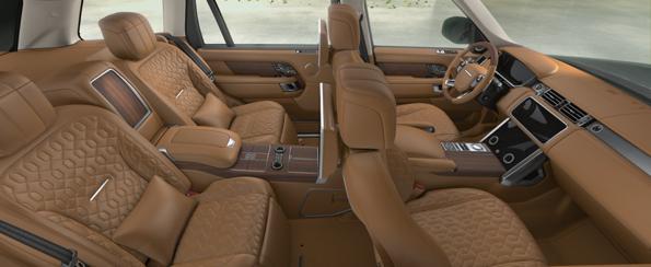 内饰方面,路虎揽胜SVA巅峰创世加长版独有的后排独立豪华行政座椅带25种模式“热石”按摩功能,后排座椅车载冰箱以及SVA车型专属配备的后排电动一键关闭自动电吸门等功能满足了商务人士出行办公的多样化用车需求。新增的车库门遥控装置(HomeLink®)可实现车辆与电动车库门的智能匹配,从而自动控制车库门的启闭状态,为消费者带来一应俱全的数字化时代需求。
