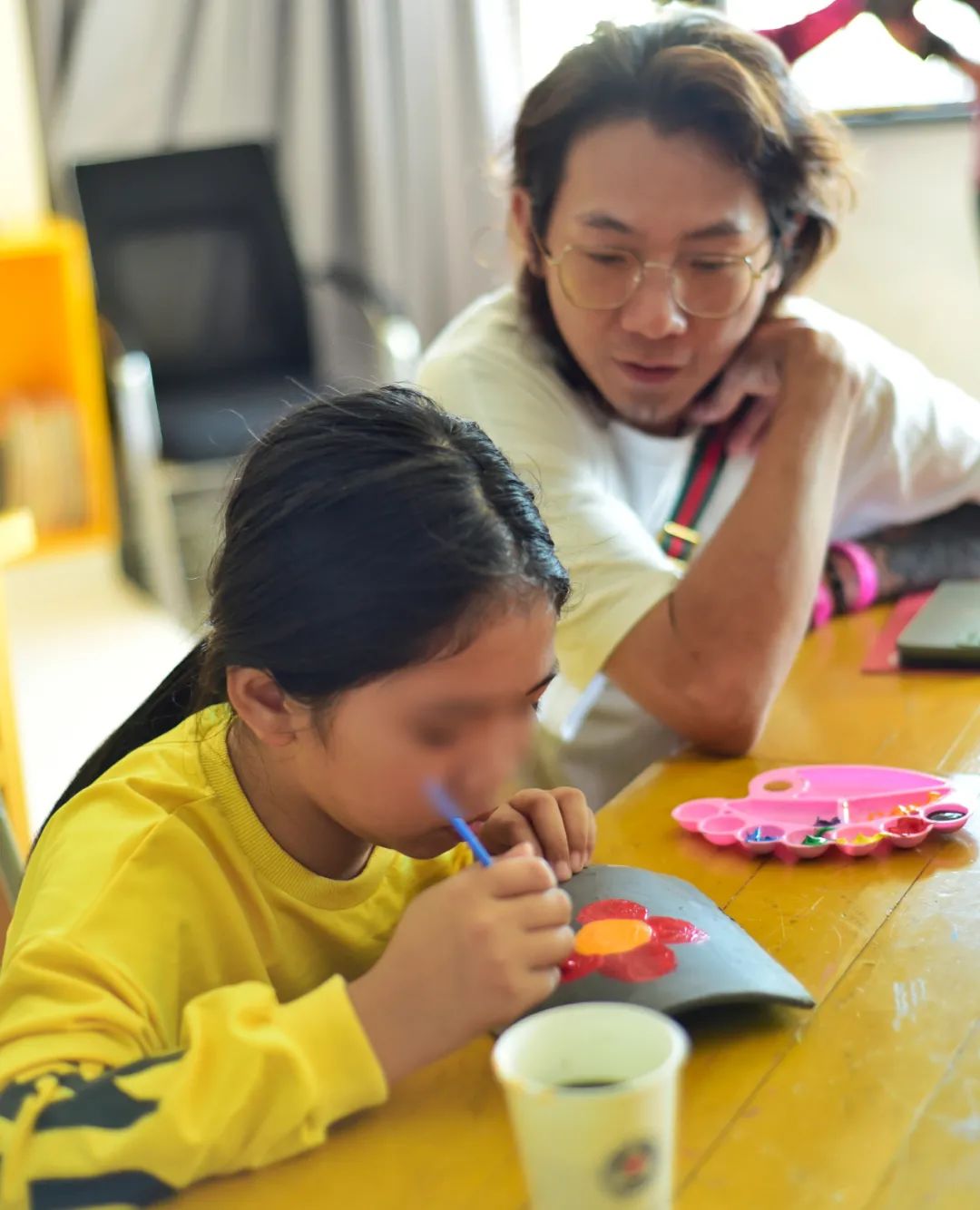 结对陪着小朋友们画画!