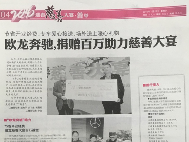 浙江欧龙奔驰,捐赠百万助力慈善大宴...